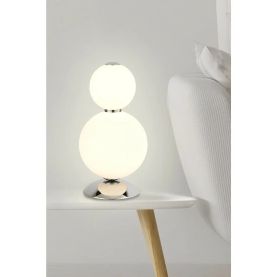 This chrome based table lamp with two dome lights and opal glass shades, will add glamour to any room. Integrated LED 15W.