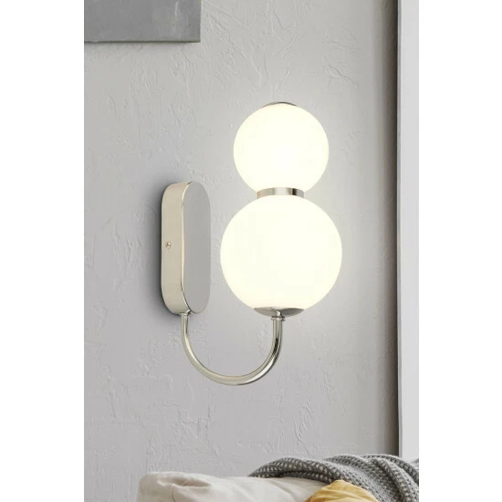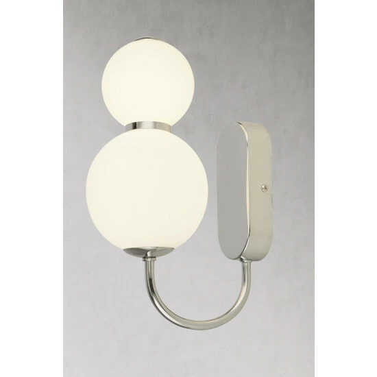 This eye-catching 2 light wall light will add a touch of elegance to any home. With 2 dome lights with opal shades on a chrome fitting, this wall light looks equally great when used alone or as a pair. Integrated LED, 11W.