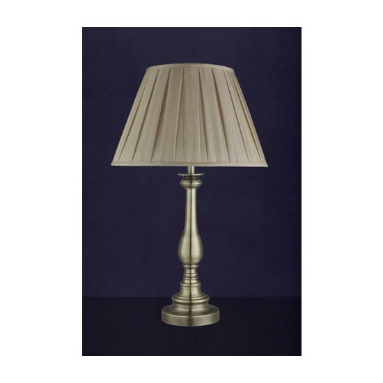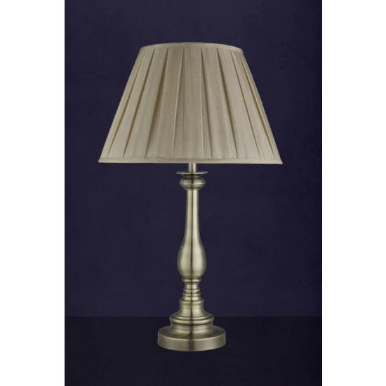 This antique brass table lamp has an elegant pleated fabric shade, which will work beautifully with most décor colourways. Bulbs not included. We recommend 1 x E27 60W GLS bulb.