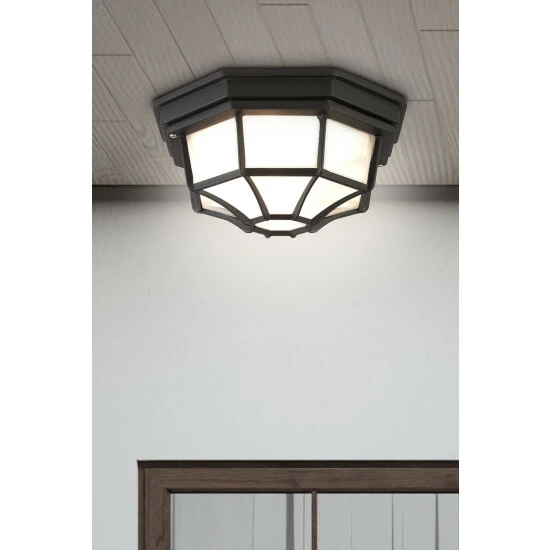 This traditional design fitting is ideal for lighting up a porch or outdoor area. With a black aluminium fitting and sanded glass, this offers a practical lighting solution, and is IP44 rated, meaning that this is splashproof to protect against the elements. Bulbs not included. We recommend 1 x E27 60W GLS bulb.
