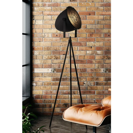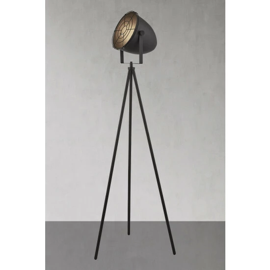 Bringing the stage to your home, this floor lamp will give a modern industrial look to any room. In matt black, and with a tripod base, this floor lamp will sit perfectly within any contemporary home. Bulbs not included. We recommend 1 x E27 60W GLS bulb.