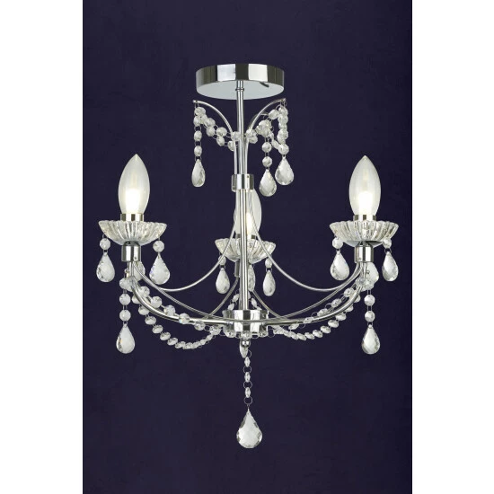 Bring some glamour to your bathroom with this statement chandelier. With 3 lights and a chrome and white colour palette, this light will elevate any bathroom! Bulbs not included. We recommend 3 x G9 18W bulbs.