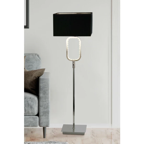 This floor lamp will add a stylish touch to any room. With a black shade and an LED crystal glass and chrome base, this lamp will add some understated glamour to your home. Bulbs not included. We recommend 1 x E27 60W GLS bulb.