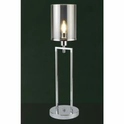 Elevate your home decor with this sleek table lamp. The lamp features a chrome frame base, finished with a smoked glass shade. This table lamp is ideal for both contemporary and more traditional interiors. Bulbs not included. We recommend 1 x E14 40W candle bulb.
