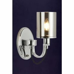 This chrome wall light with glass cylinder shade looks modern and stylish in any bedroom, living room, dining room or kitchen. The clear glass outer conceals a frosted glass inner and creates an elegant lighting effect adding the perfect finishing touch to any contemporary interior. Bulbs not included. We recommend 1 x E14 40W candle bulb.