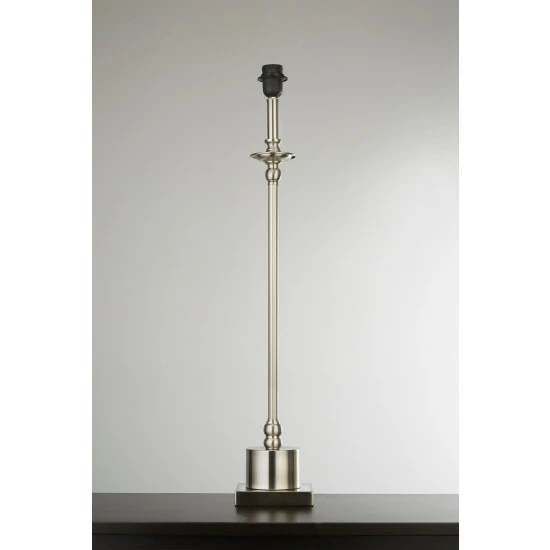 Create an eye-catching tall table lamp with this 81cm chrome metal base. Add any style and colourway of lampshade, to create either a contemporary or more traditional lamp. Bulbs not included.