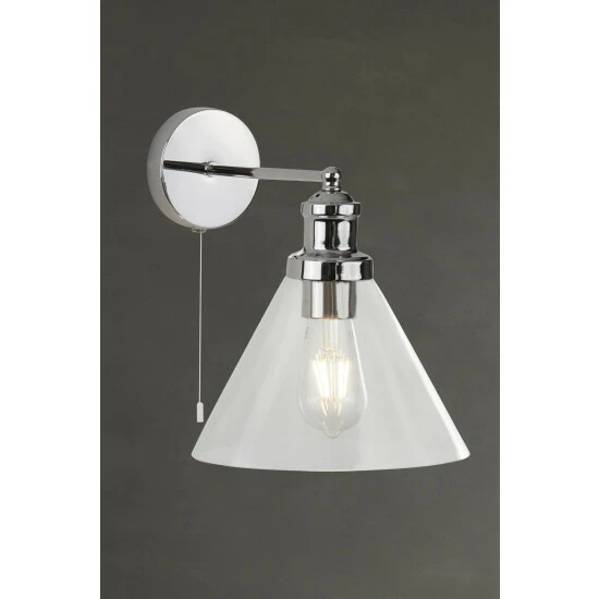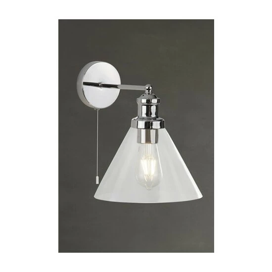 Classic and timeless, this traditional wall light with the pyramid shape shade in clear glass and chrome will make a great addition to your home interior. Bulbs not included. We recommend 1 x E27 60W GLS bulb.