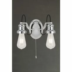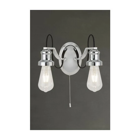 With exposed bulbs and a chrome finish, this wall light will suit both modern and more traditional homes. Used on its own or as a pair, this light, with its on/off pull cord switch, will add an eye-catching feature to any room. Bulbs not included. We recommend 2 x E27 10W GLS bulbs.