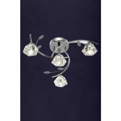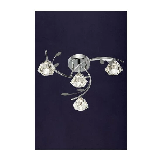 Beautiful modern yet classic 4 arm semi flush light, with a stunning curved arm and polished chrome finish. With beautiful diamond effect glass shades and leaf detailing this light will create a wonderful glow. Bulbs not included. We recommend 4 x G9 bulbs.