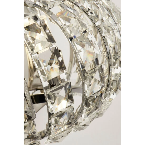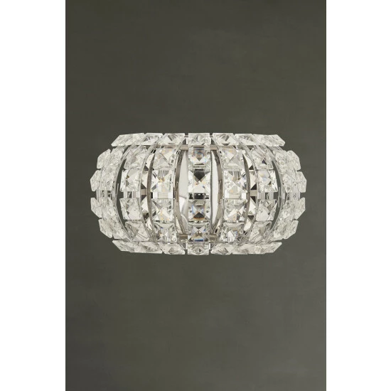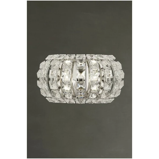 This classic light wall light will add a shine and sparkle to your room thanks to its crystal beads enclosed in a curved chrome frame. When lit crystal elements will disperse the light beautifully, meaning this is deal for the living room, lounge or bedroom. Bulbs not included. We recommend 2 x G9 halogen bulbs.
