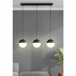 Sleek and stylish, this 3 light bar pendant will look great hung low over a dining table or kitchen island. With 3 lamps with opal glass domes and black finish , this ceiling light will add a modern feel to any home. Bulbs not included. We recommend 3 x E27 GLS bulbs.