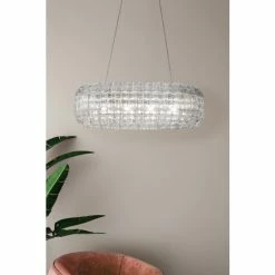 Add a touch of elegance to your home with this 4 light ceiling light. This statement piece has acrylic tiles, which will beautifully illuminate any room, and a chrome chain suspension. Bulbs not included. We recommend 4 x E27 GLS bulbs.