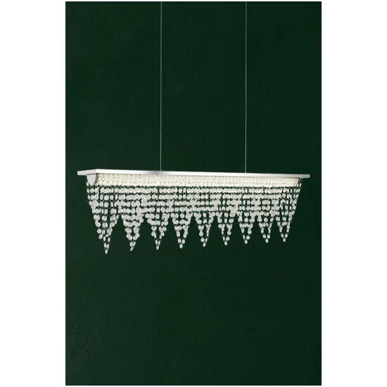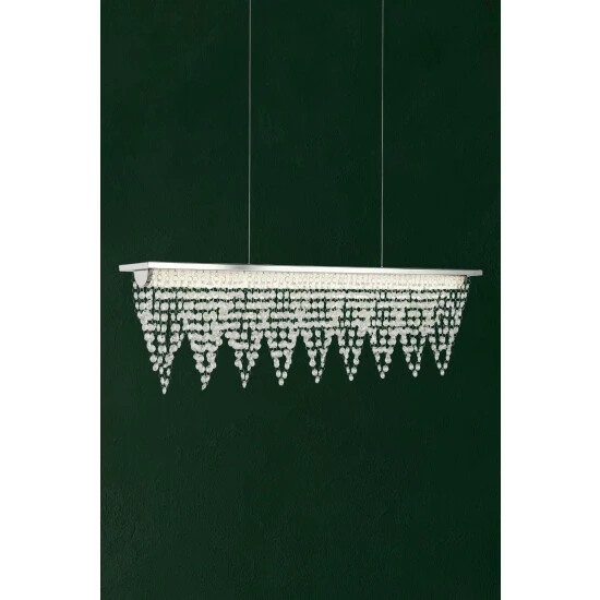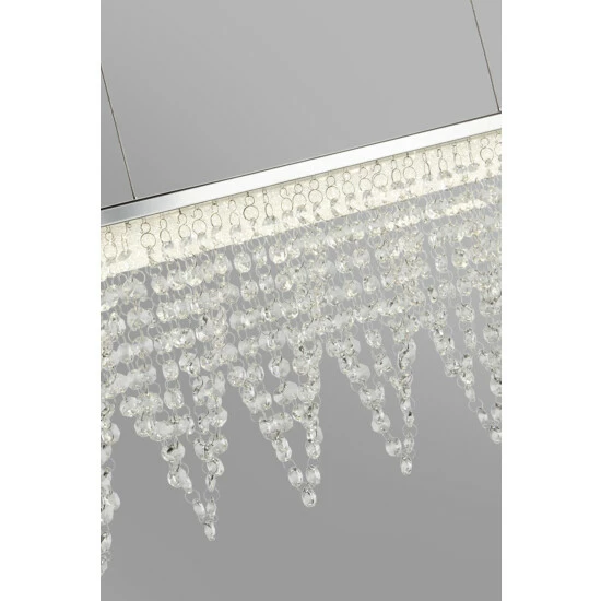 This modern LED ceiling pendant features an eye-catching design with beautiful waterfall effect crystals. With a chrome bar, this ceiling bar will add a unique focal point to any room. Thanks to its built in LED lamps this light is energy efficient too! Integrated LED, 15W.