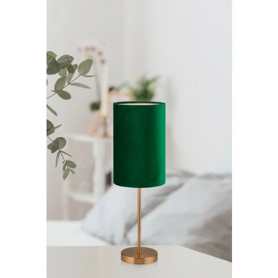 Add some luxury to your home, with this table lamp. The deep green velvet shade and dark gold base, will add a touch of glamour to any home. Bulb/s not included. Takes 1 x E14 Candle bulb 7W.