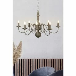 In a textured grey colourway, this classic 8 light candle style ceiling light gets a contemporary update. With 8 arms and a candlestick style base, this light will suit for modern and more traditional homes. Bulbs not included. We recommend 8 x E14 candle bulbs.