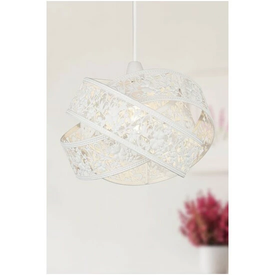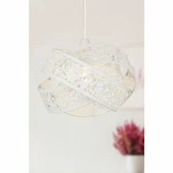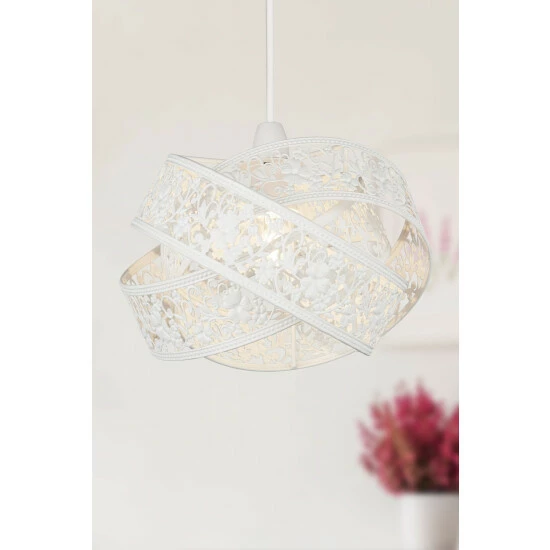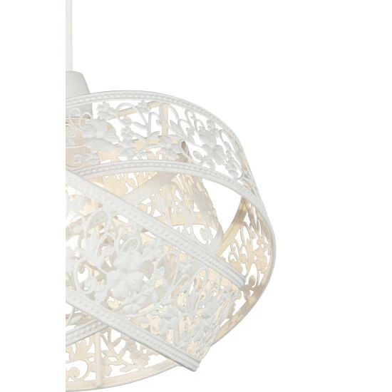 A thick band of cream fretwork has been interwoven to create this eye-catching shade perfect for modern interiors including living rooms and open plan kitchen diners. The delicate and decorative fretwork design allowing various degrees of light to be passed through, creating a stunning display on surrounding walls. Shade only, Bulbs not included. We recommend E14, E27 or B22 10W bulbs.