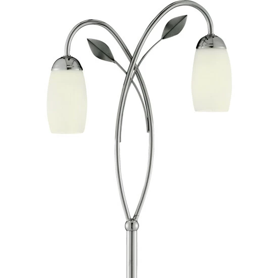 This 2 light floor lamp with white glass and leaf decoration makes an attractive feature in any bedroom, living room or dining room. Bulbs not included. We recommend 2 x E14 7W candle bulbs.