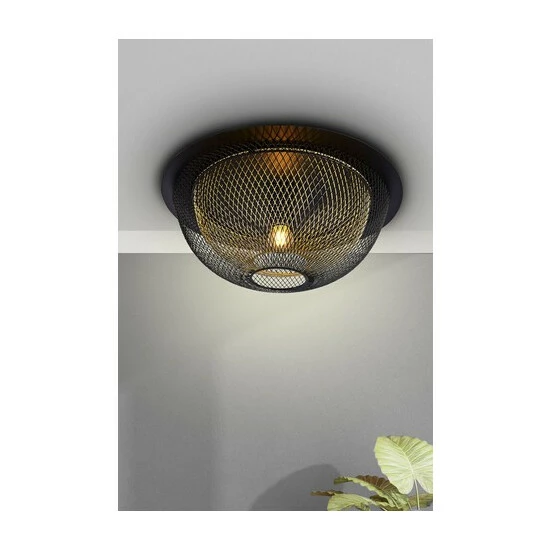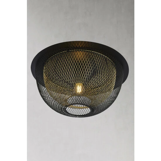 In a modern black and gold colourway, this flush ceiling light will add a contemporary finish to any room. The mesh effect will create beautiful light patterns in any home. Bulbs not included. We recommend 1 x E27 60W GLS bulb.
