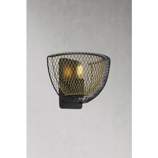 This striking wall light with a matt black layered mesh shade and gold inner will suit both traditional and more modern homes. Bulbs not included. We recommend 1 x E14 60W candle bulb.