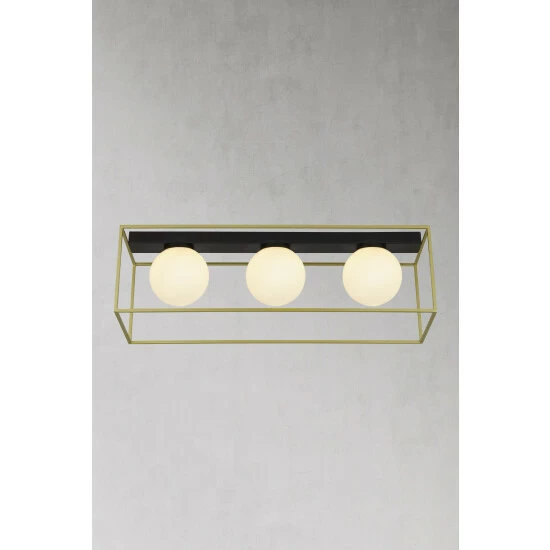 With a retro deco feel, fused with classic styling, this gold frame ceiling light with opal glass balls will add instant glamour to any home. Bulbs not included. We recommend 3 x G9 halogen bulbs.
