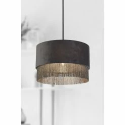 An ideal shade to add a touch of drama and elegance to your living room, dining room or bedroom. The drum shaped shade is finished in a luxurious, on-trend grey velvet with a delicate matching fringe which softens and adds movement to an otherwise traditional design. Shade only, Bulbs not included. We recommend E14, E27 or B22 10W bulbs.