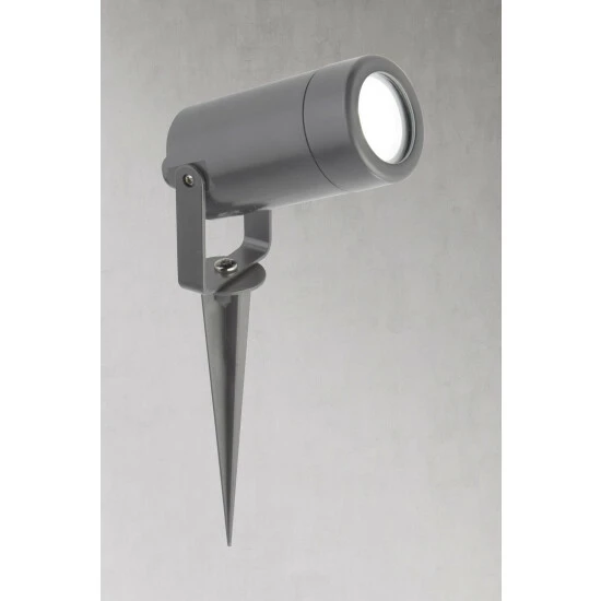 This grey outdoor garden spike is a practical solution for lighting up parts of your garden or shrubbery. Mounted on a movable frame, this light is easy to install, and its IP44 rating means it is fully showerproof against the elements. Bulbs not included. We recommend 1 x GU10 10W bulb.