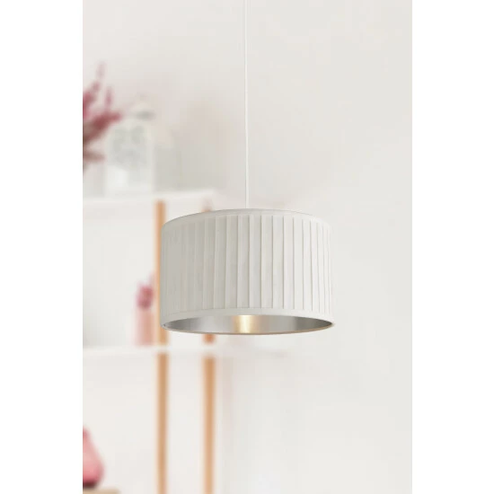 Delicate, vertical pleats provide stylish texture to this drum shaped shade. The silver fabric complements the metallic silver inner to deliver a shade that wouldn’t look out of place in any contemporary living room or bedroom. Shade only, Bulbs not included. We recommend E14, E27 or B22 10W bulbs.