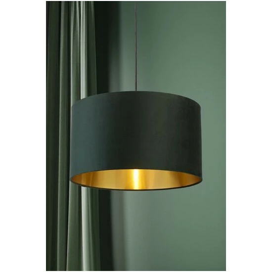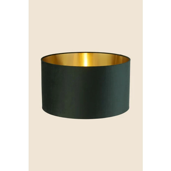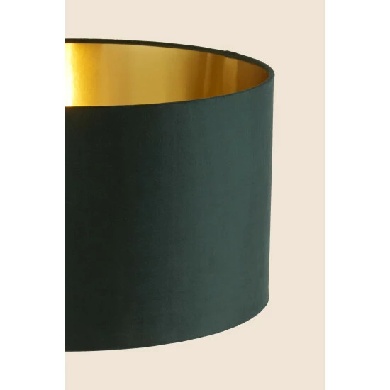 The dark green colour of this large velvet shade contrasts wonderfully with the gold inner to immediately elevate any room it is placed in. Can be used as a ceiling light or on a base. Shade only, bulbs not included. We recommend E14, E27 or B22 10W bulbs.