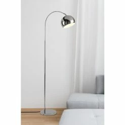 This contemporary arc floor lamp will look great as a reading lamp or to illuminate the corner of a room. With a modern chrome shade, base and frame, this light will match with most décor styles. Bulbs not included. We recommend 1 x E27 10W golf ball bulb.