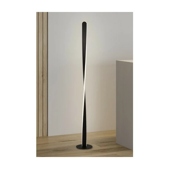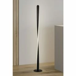 Modern and stylish, this floor lamp will add a contemporary statement to any home. In a matt black finish and with white LED lights in a twisted design, this floor lamp is sleek in design. Integrated LED, 24W.
