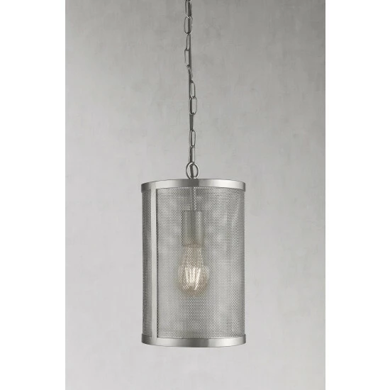 The mesh effect shade of this single ceiling pendant, coupled with the chain detail suspension, will add a contemporary, industrial feel to any home. Bulbs not included. We recommend 1 x E27 60W GLS bulb.