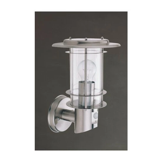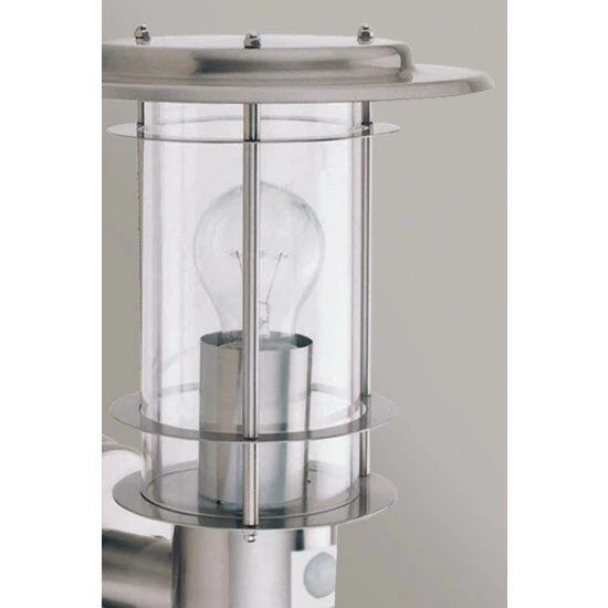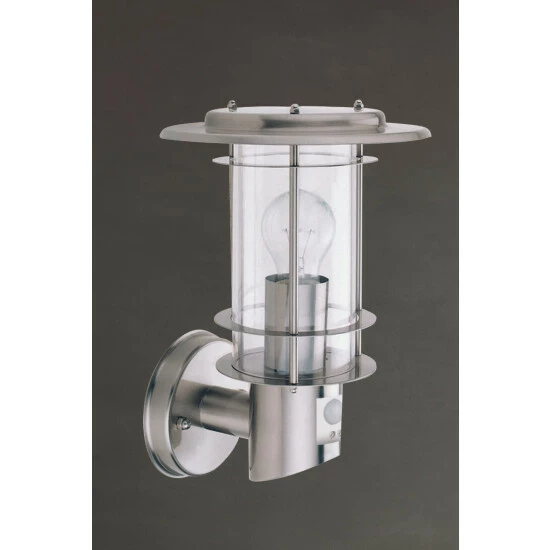 Fit with a motion sensor, this traditional outdoor wall light is great for welcoming people into your home. With its stainless steel finish with clear glass design and exposed lamp, this outdoor lamp also has an IP44 rating and splashproof feature, it can handle all types of weather. Bulbs not included. We recommend 1 x E27 60W GLS bulb.