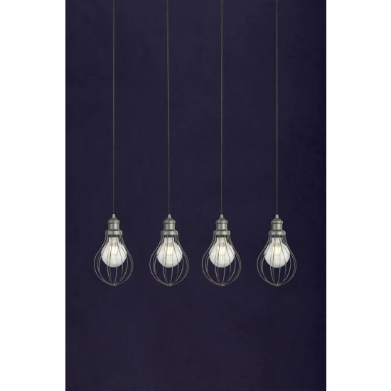 Transform your interiors with this fantastic 4 light cage style shade ceiling bar light. The minimalist style, and pewter finish will add a contemporary touch to any room. Bulbs not included. We recommend 4 x E27 GLS bulbs.