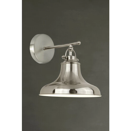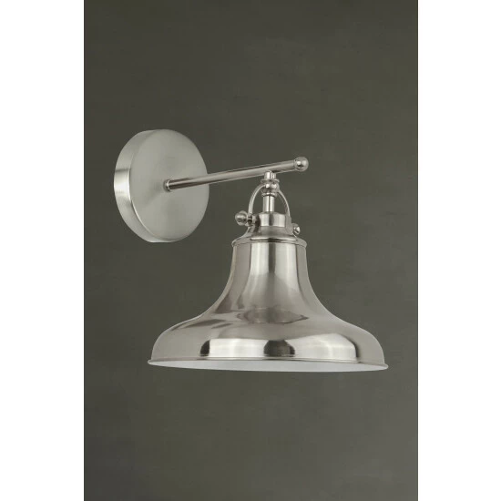 Complete with a bell shaped industrial style shade, this satin silver wall light will look very stylish in any room in your home. Bulbs not included. We recommend 1 x E27 60W GLS bulb.