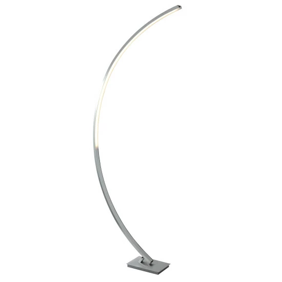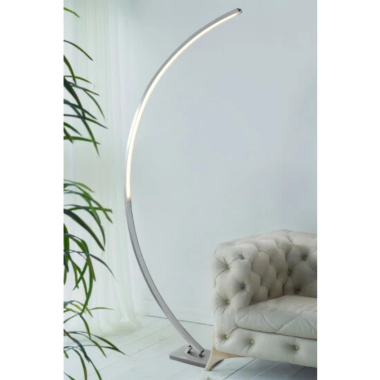 This stylish curved floor lamp adds a bold statement to any home! The contemporary designed satin silver frame and opal diffuser LED lights is the perfect finishing touch to any home. Integrated LED. 24W.
