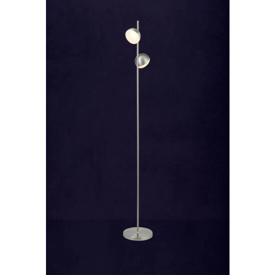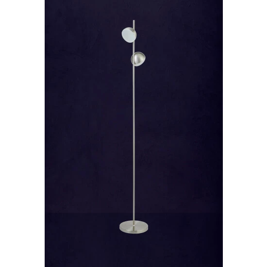 Simple yet stylish, this floor lamp will add a contemporary touch to any home. In a satin silver colourway, and with 2 lights, this floor lamp can work as either a reading lamp or as a statement feature. Integrated LED.