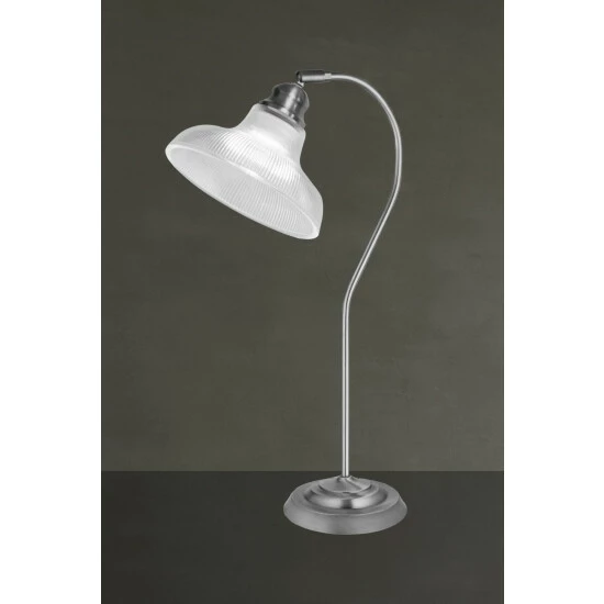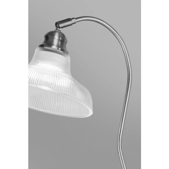 This simple yet effective satin silver table lamp with glass shade has a clean and sharp look that would add a finishing touch to any room in your house. Bulbs not included. We recommend 1 x E27 60W GLS bulb.