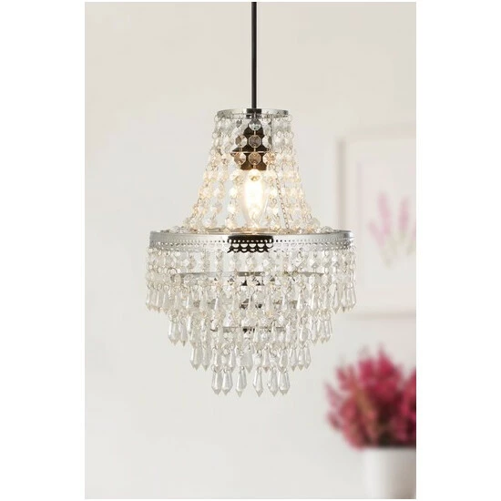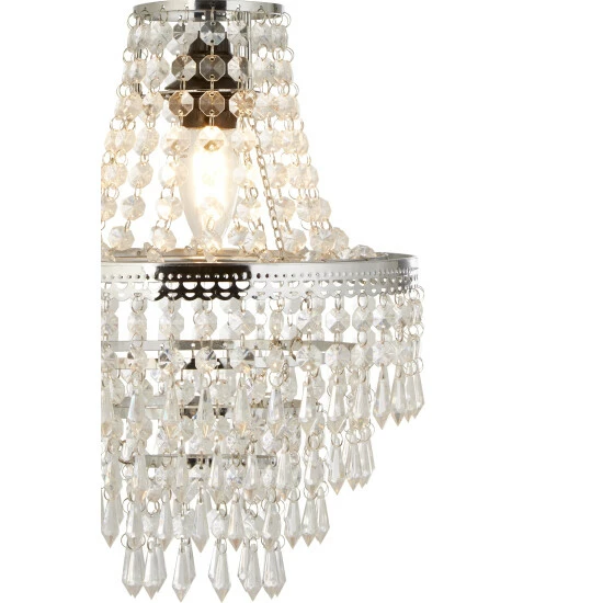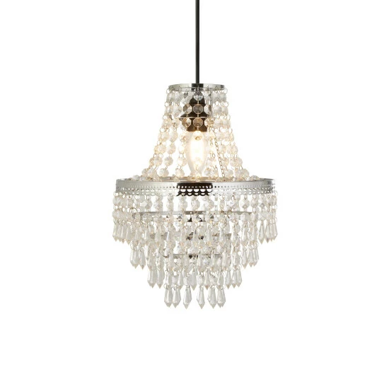 If you’re looking for maximum impact for little effort then this small Empire shade is for you. Boasting beautiful garlands of acrylic droplets which cascade from a polished chrome frame, the display of light you receive is priceless. Use it in your living room, bedroom or hang low over a dining table for an instant wow factor. And you can attach it to your current light fitting so no expensive installation is required. Shade only, Bulbs not included. We recommend E14, E27 or B22 10W bulbs.