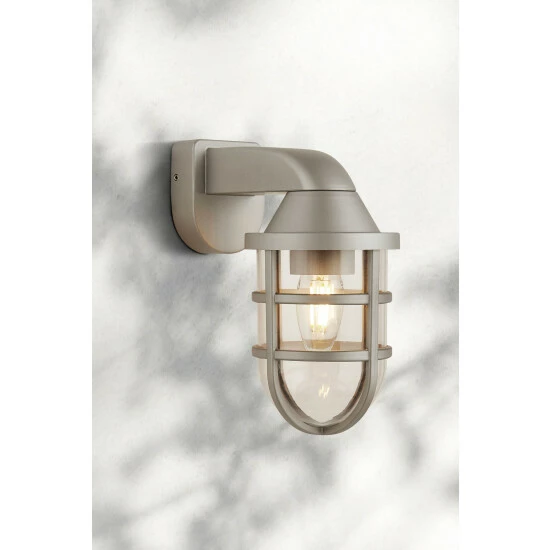 Combining modern and traditional design this outdoor wall light will look great in any style of garden or outdoor space. With a silver cage suspended from a thick wall plate, this wall light is showerproof due to its IP44 rating, and so can be used all year round. Bulbs not includes. Takes one E27 GLS LED.