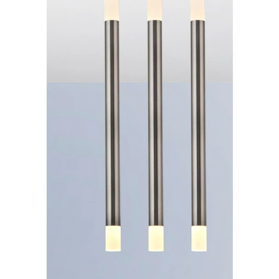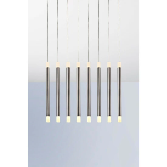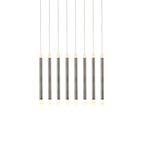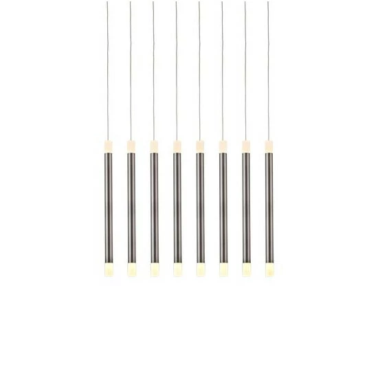 This eye-catching ceiling pendant will add a contemporary feature to any room. This eight light bar pendant is height adjustable so is ideal for use over a kitchen island or dining area. In a sleek satin silver finish, this light will add a stylish touch to any home. Integrated LED.