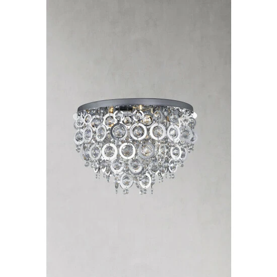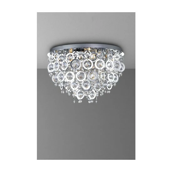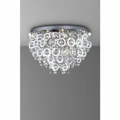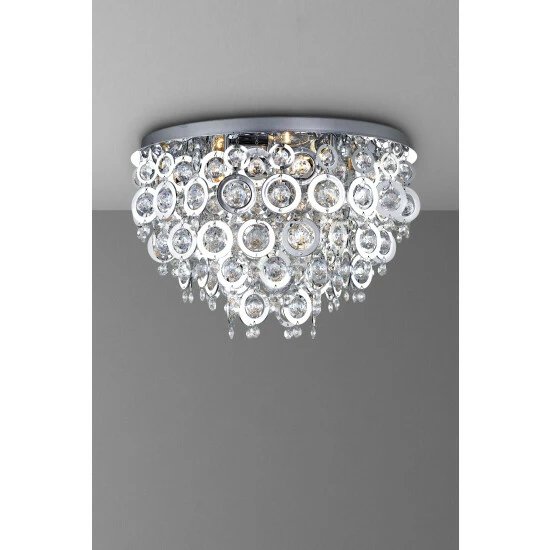 This flush ceiling fitting with chrome rings and clear acrylic balls will add glamour to your home. With 5 lights, this will be a beautiful feature in any bedroom or living room. Bulbs not included. We recommend 5 x E14 candle bulbs.