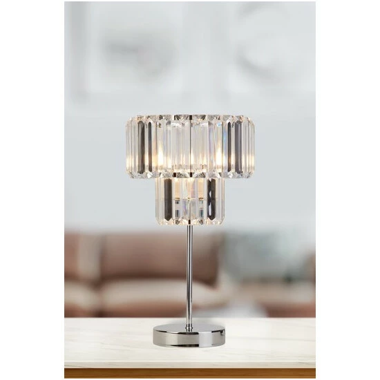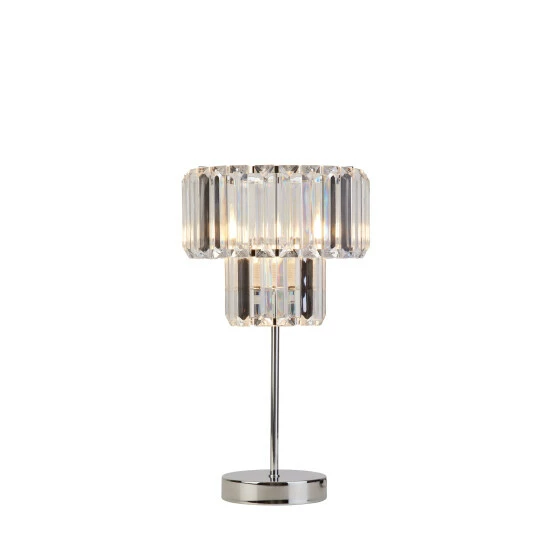 Bring some sparkle to your home with this crystal lamp. With clear acrylic crystal slabs and a chrome stand and base, this will bring an elegant look to any room. Bulb/s not included. Takes 1 x E14 Candle bulb 7W.