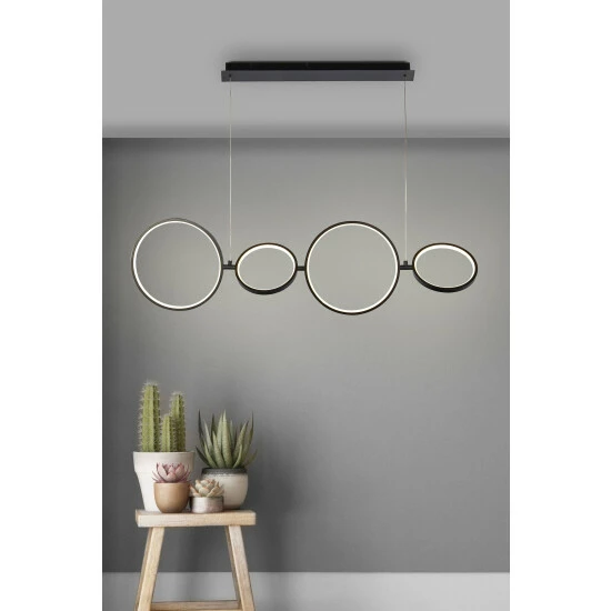 Bring a stylish statement to any room with this eye-catching ceiling light. With 4 circles of LED lights, finished in matt black, this light will be a talking point in any contemporary home. Integrated LED, 34W.