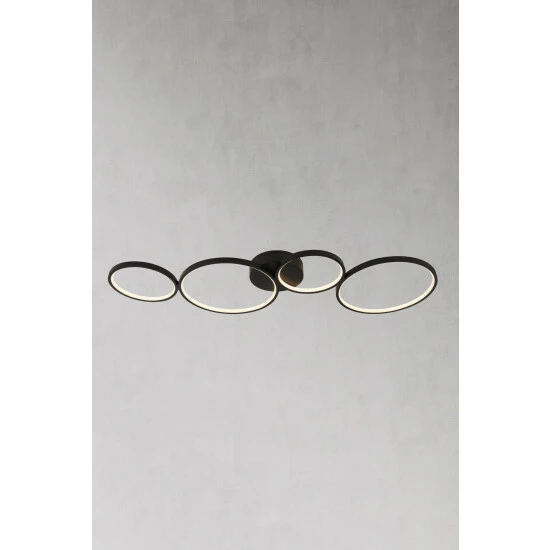 Bring a stylish statement to any room with this eye-catching ceiling light. With 4 circles of LED lights, finished in matt black, this light will be a talking point in any contemporary home. Integrated LED, 34W.