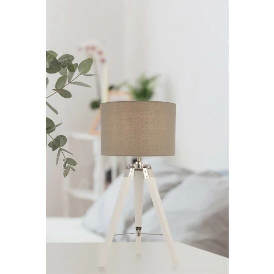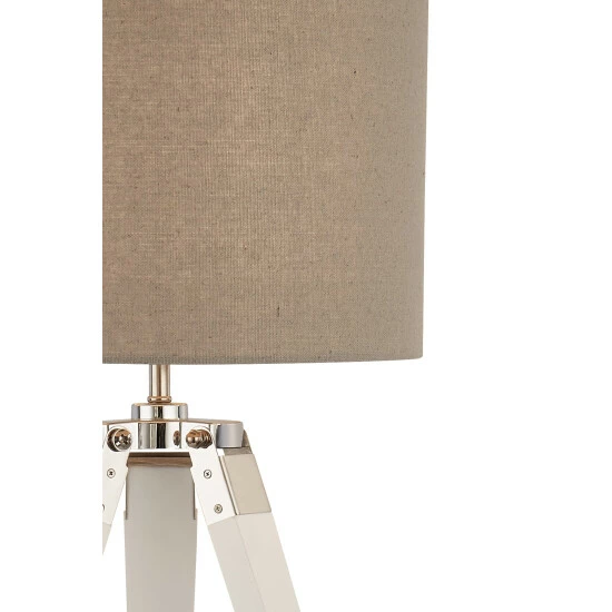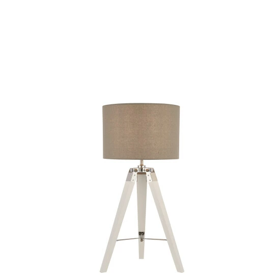This modern and sleek table lamp has a white and silver tripod base with contrasting pale grey shade, which will suit all décor styles. Bulb/s not included. Takes 1 x E27 Golf Ball LED bulb 10W.