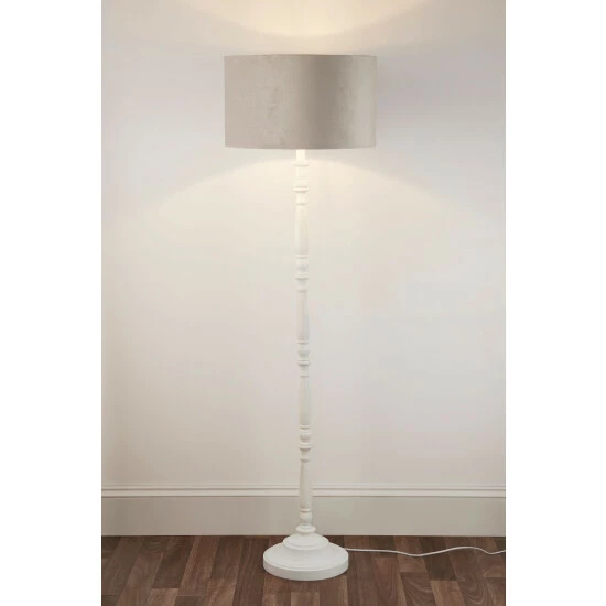 This 150cm high candlestick floor lamp base works with any size of shade. The off white colourway and candlestick design makes this any ideal addition to any style of home. Bulbs not included. Takes 1 x E27 Golf Ball LED bulb.