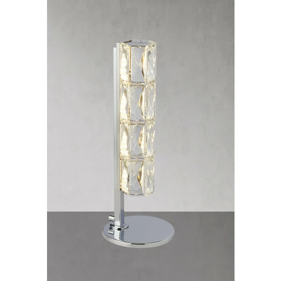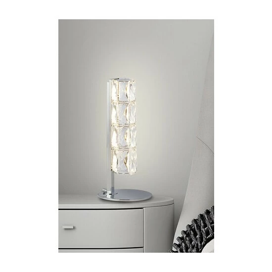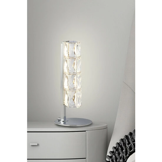 Add glamour to any room with this LED table lamp with clear crystal glass trim and chrome bar. Integrated LED 12W.